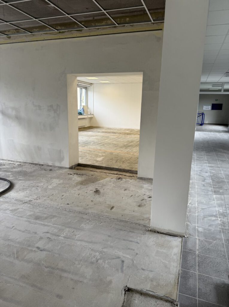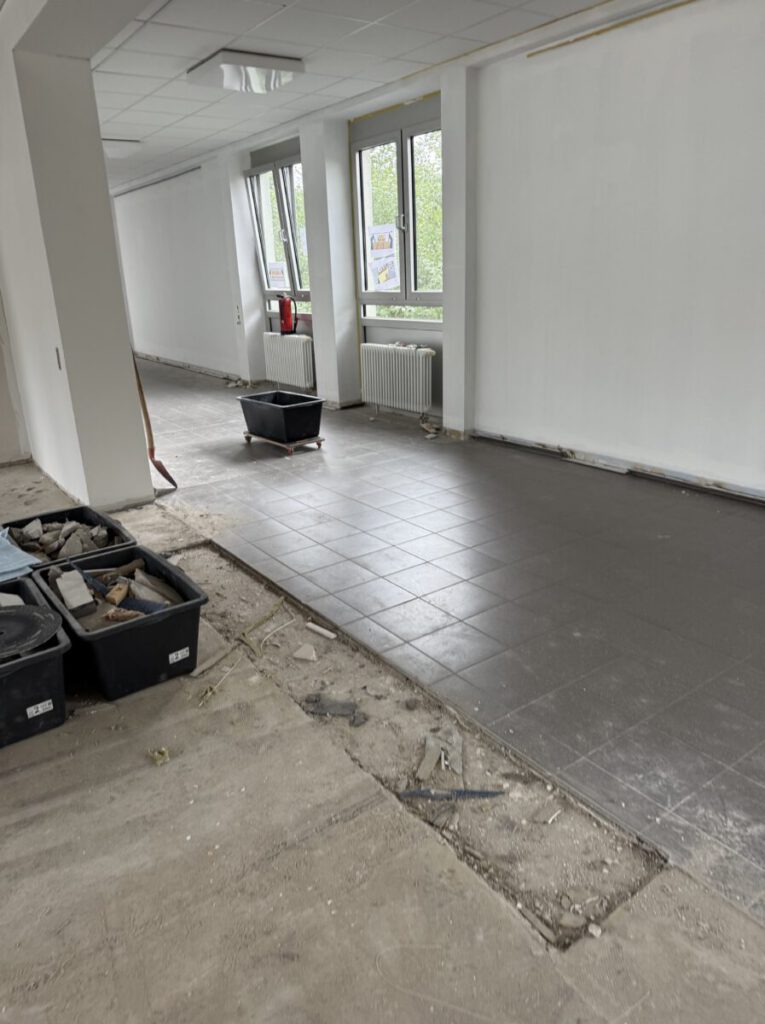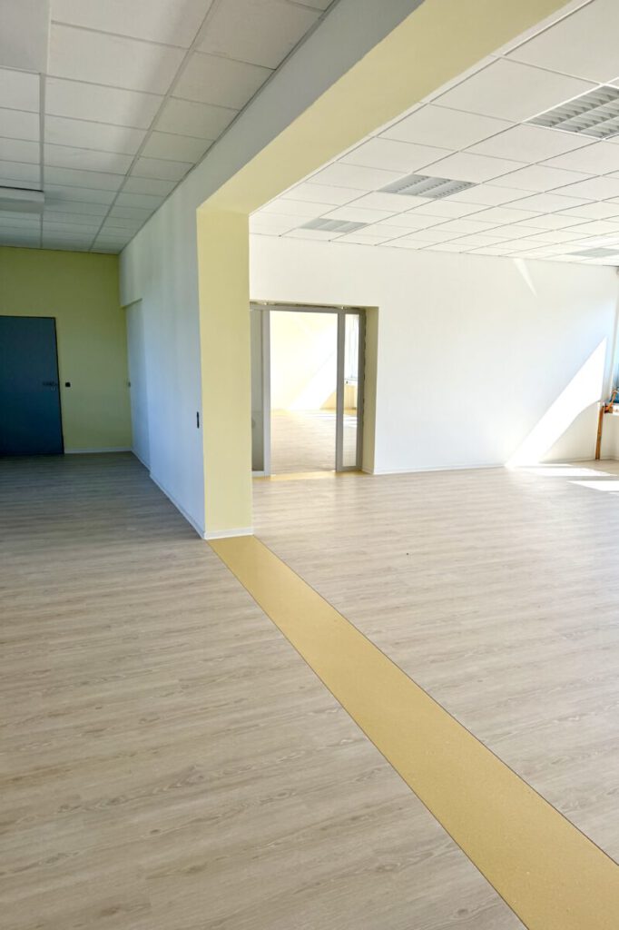 Aus 3 alten Schulklassen wurden 2 neue Schulklassen erstellt und einen großen offenen Raum für die Schüler zum chillen.